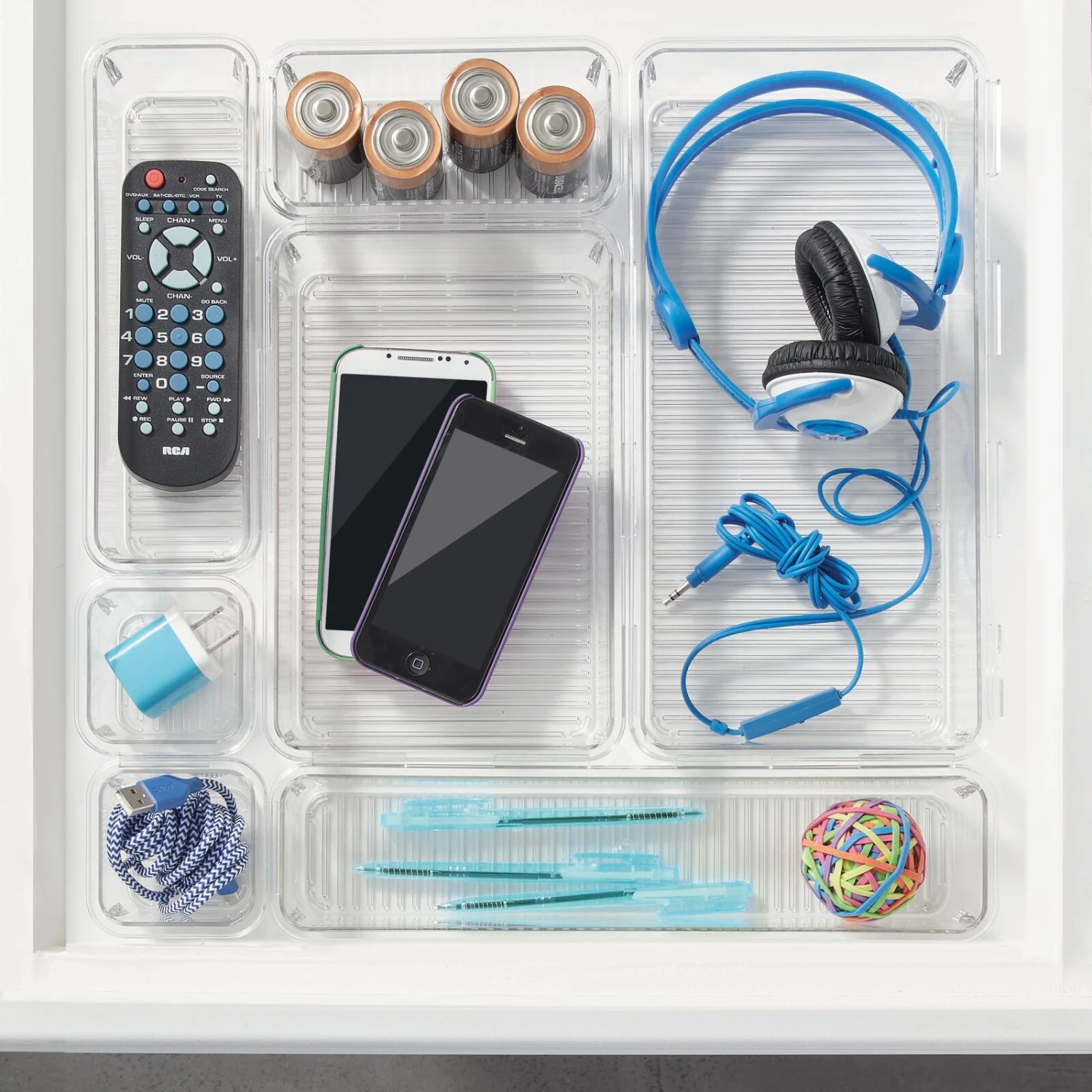 Keep everything tidy with our 7-Piece Drawer Organizer Set. Seven organizers of varying sizes allow you to group items together, storing office supplies more efficiently. Organizers interlock in any arrangement for a secure fit. This set also doubles as a makeup organizer corralling everything from lipsticks to makeup brushes and more.