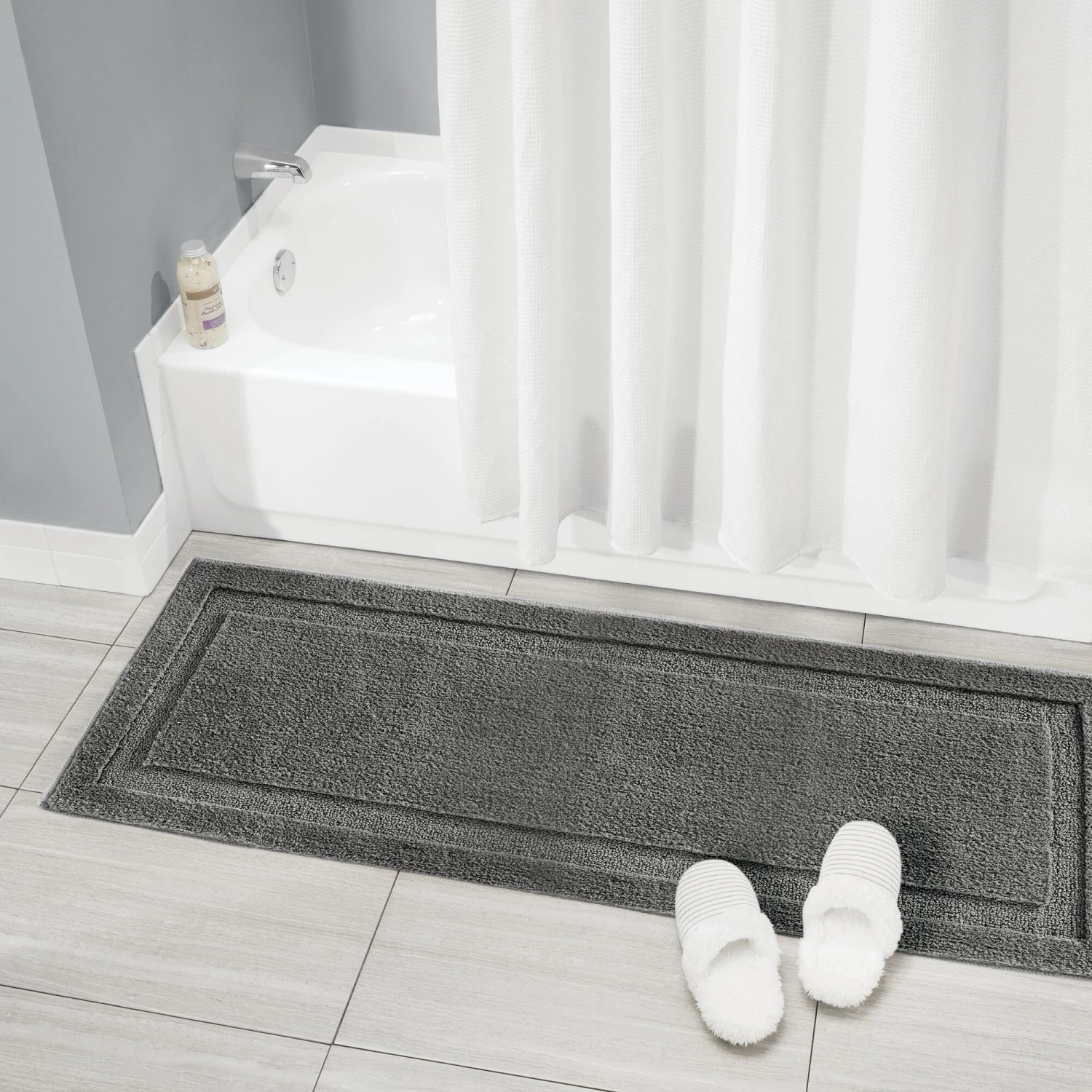 Create a luxurious bath ritual with this elevated bath runner that showcases a monochromatic border for added style. This soft foundation provides a comfortable place to stand after you step out of the shower or fits between Jack and Jill sinks, bringing an incredibly soft cushion and absorbent underfoot.