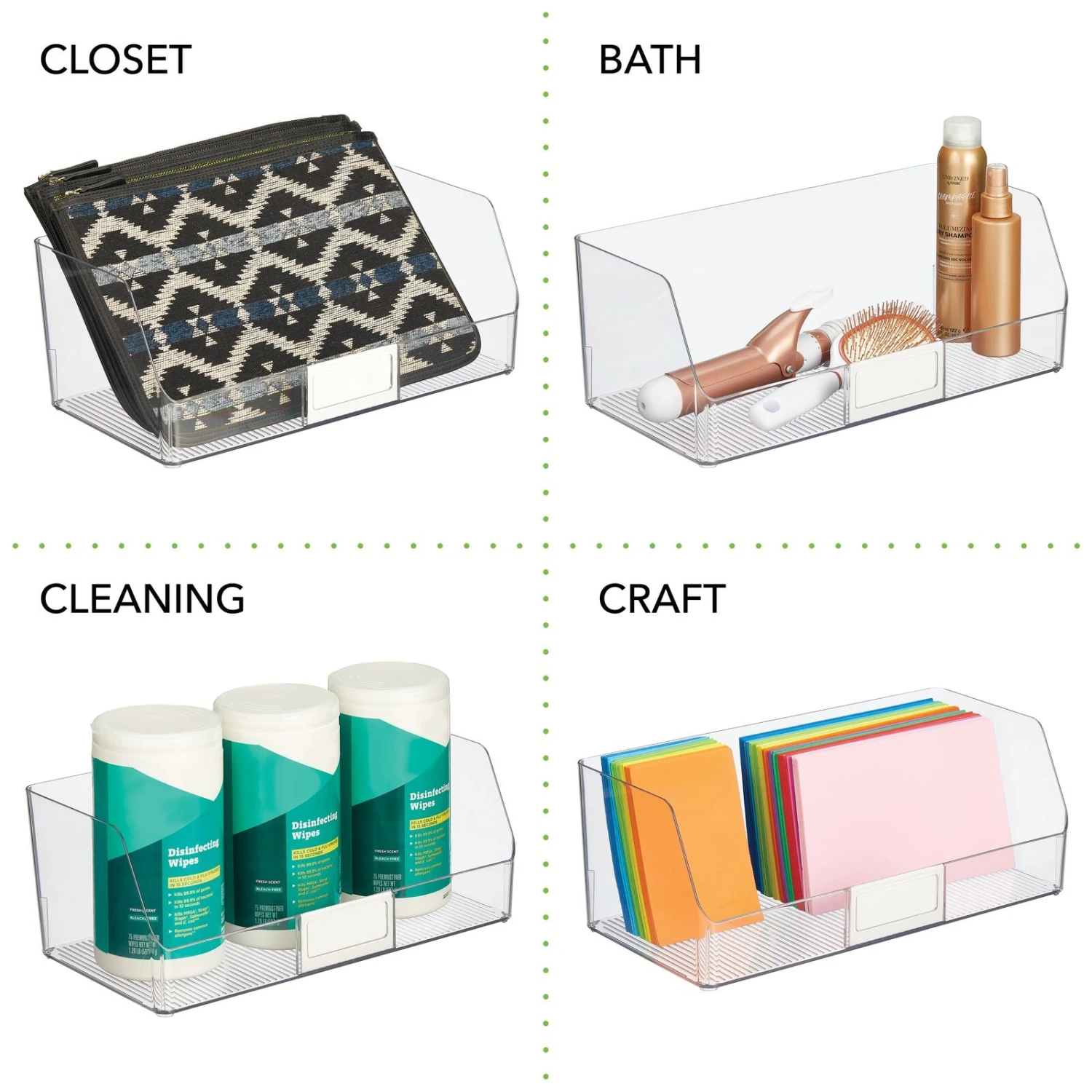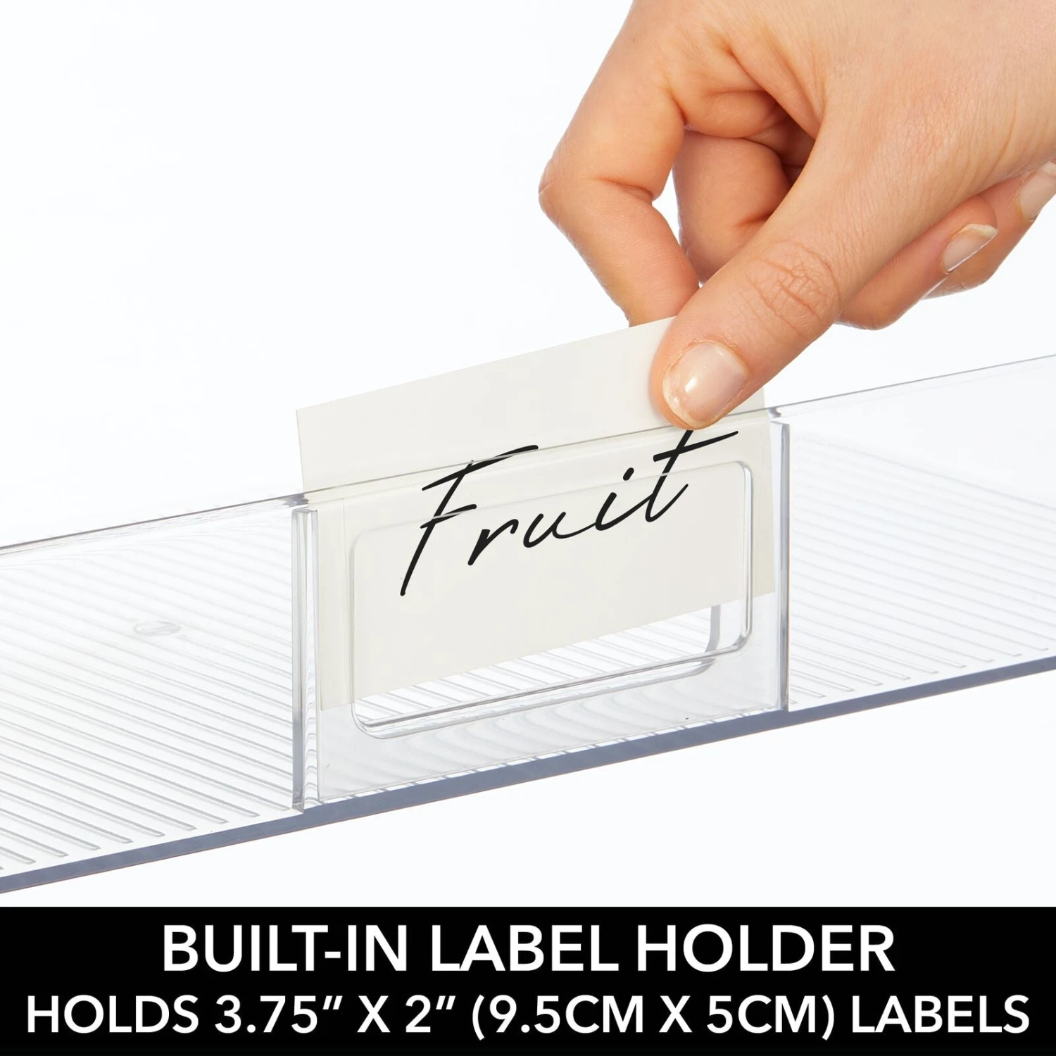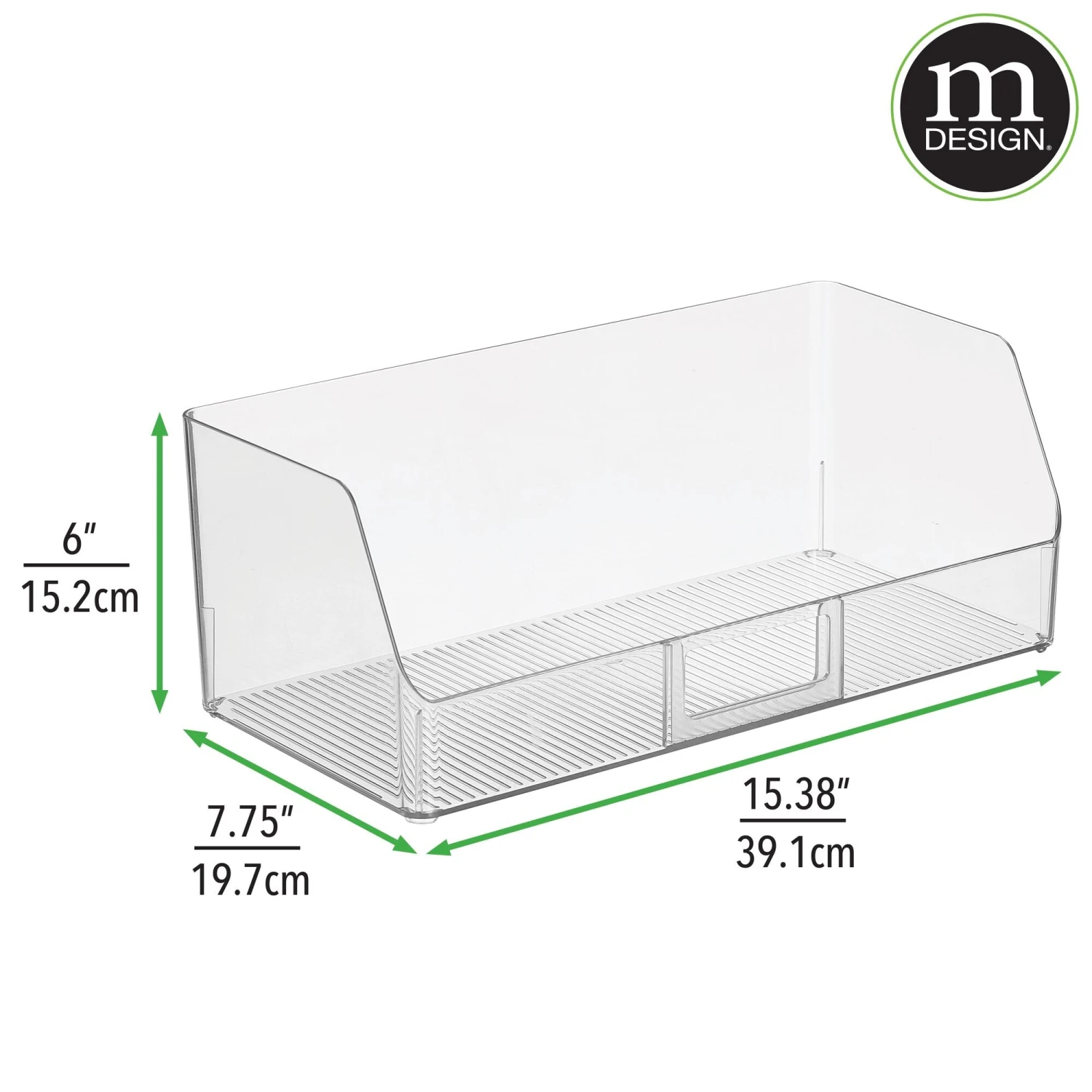 Neatly stow away kitchen essentials with these Versatile Open Front Kitchen Bins. The front cutout provides easy access to pantry staples like snacks, cans, or jarred foods while the clear construction brings a modern look to any open shelf. For a finished look, the included front label holder sets you up for long-term organizing success.